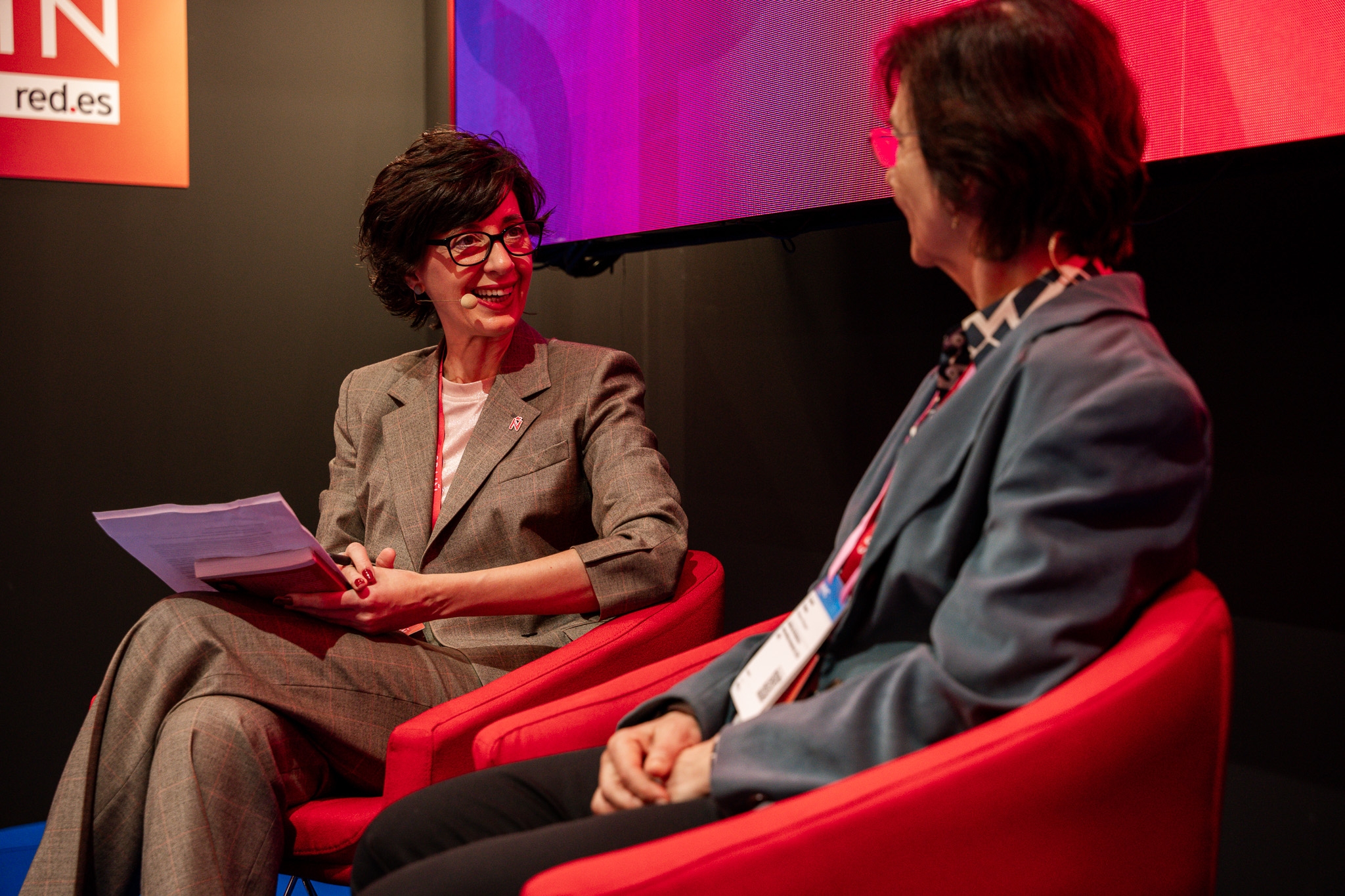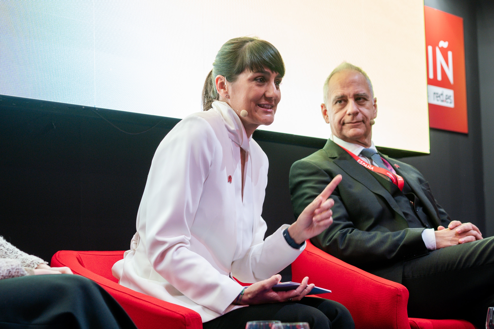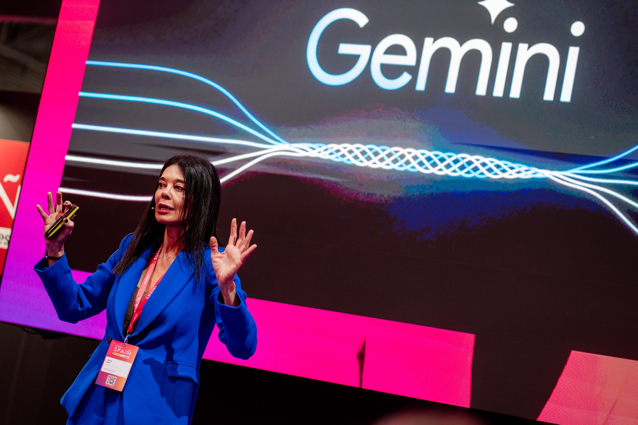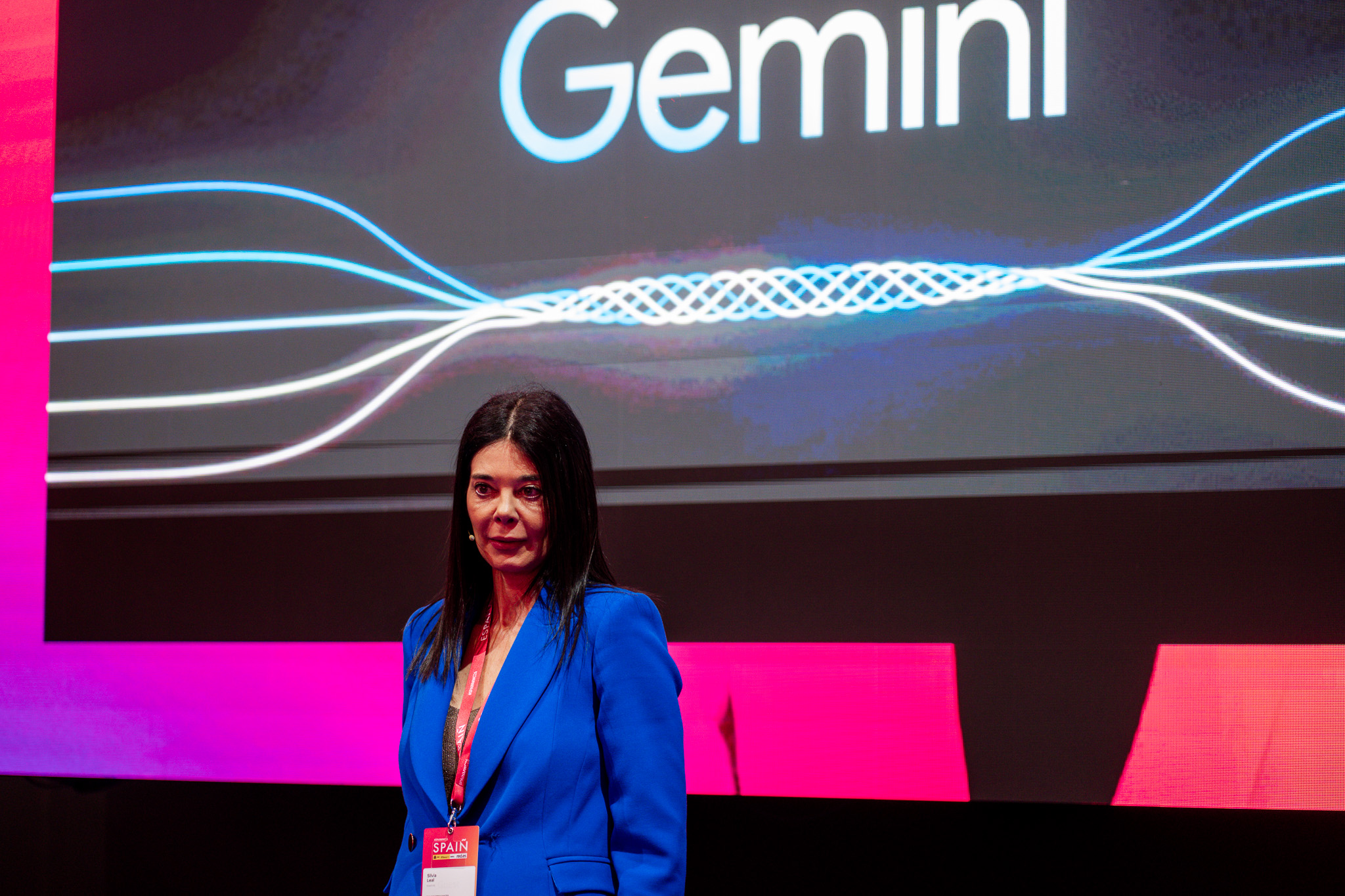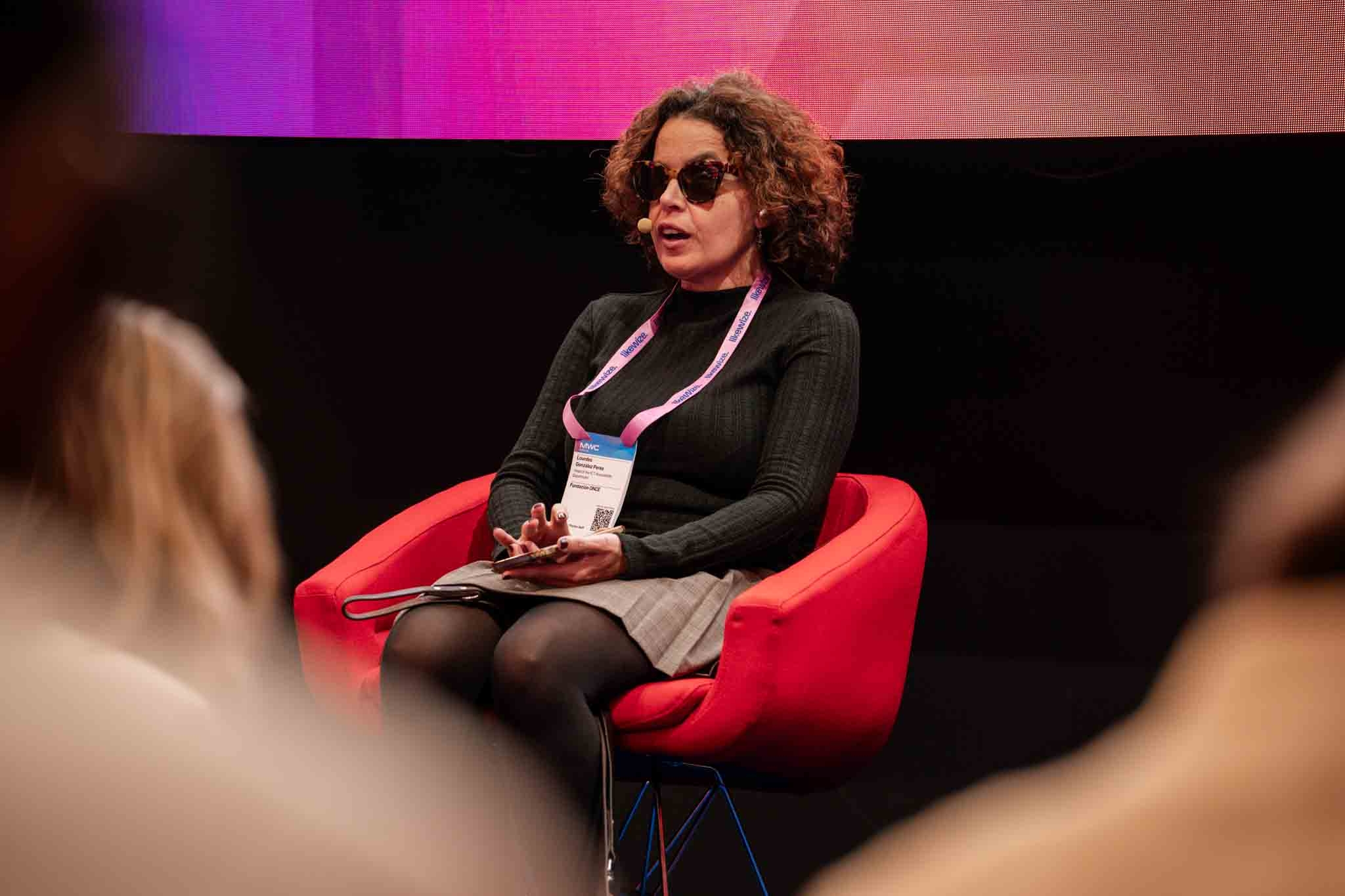 Empresarios/as, ejecutivos/as, expertos/as, autoridades y visitantes reunidos/as en el Pabellón de España durante MWC.